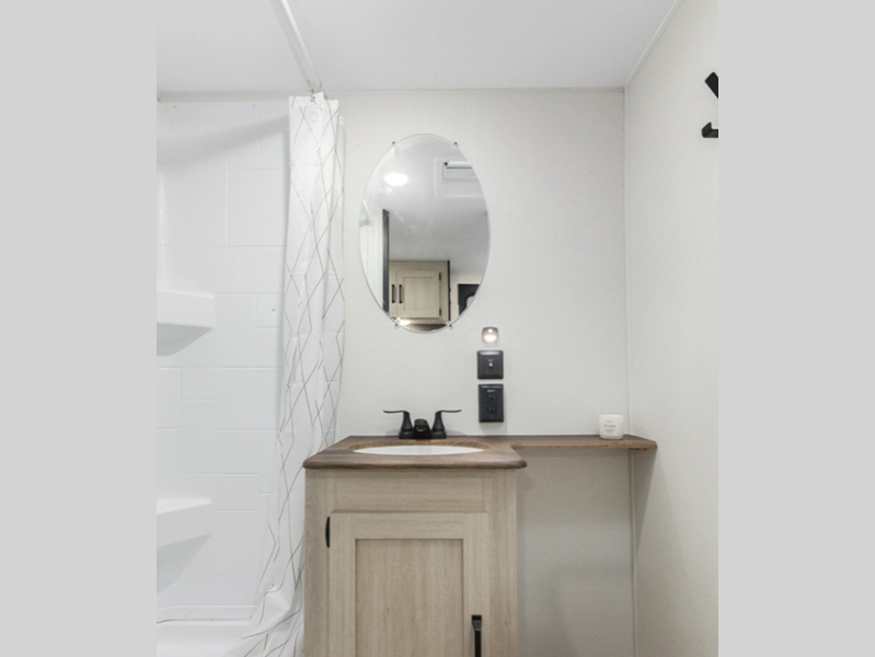 Sleeps 6 Slides 1 Length 32 ft Ext Width 8 ft Ext Height 10 ft 11 in Hitch Weight 850 lbs GVWR 7603 lbs Dry Weight 6103 lbs Cargo Capacity 1500 lbs Fresh Water Capacity 43 gals Grey Water Capacity 35 gals Black Water Capacity 35 gals Number Of Bunks 2 Available Beds RV Queen Refrigerator Type Black Glass 12V Cooktop Burners 3 Shower Size 36" x 30" Number of Awnings 1 LP Tank Capacity 30 lbs Water Heater Capacity 6 gal AC BTU 13500 btu Axle Count 2 Shower Type Shower w/Seat Similar Floorplans
